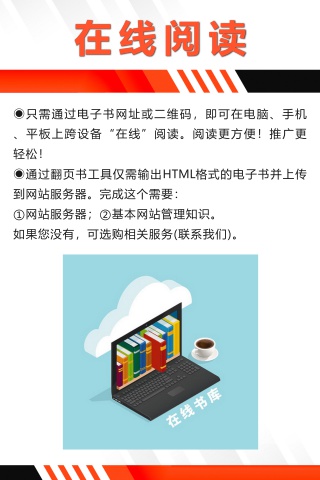 %u5728 %u7ebf %u9605 %u8bfb%u25c9%u53ea%u9700%u901a%u8fc7%u7535%u5b50%u4e66%u7f51%u5740%u6216%u4e8c%u7ef4%u7801%uff0c%u5373%u53ef%u5728%u7535%u8111%u3001%u624b%u673a%u3001%u5e73%u677f%u4e0a%u8de8%u8bbe%u5907%u201c%u5728%u7ebf%u201d%u9605%u8bfb%u3002%u9605%u8bfb%u66f4%u65b9%u4fbf%uff01%u63a8%u5e7f%u66f4%u8f7b%u677e%uff01%u25c9%u901a%u8fc7%u7ffb%u9875%u4e66%u5de5%u5177%u4ec5%u9700%u8f93%u51faHTML%u683c%u5f0f%u7684%u7535%u5b50%u4e66%u5e76%u4e0a%u4f20%u5230%u7f51%u7ad9%u670d%u52a1%u5668%u3002%u5b8c%u6210%u8fd9%u4e2a%u9700%u8981%uff1a%u2460%u7f51%u7ad9%u670d%u52a1%u5668%uff1b%u2461%u57fa%u672c%u7f51%u7ad9%u7ba1%u7406%u77e5%u8bc6%u3002%u5982%u679c%u60a8%u6ca1%u6709%uff0c%u53ef%u9009%u8d2d%u76f8%u5173%u670d%u52a1(%u8054%u7cfb%u6211%u4eec)%u3002